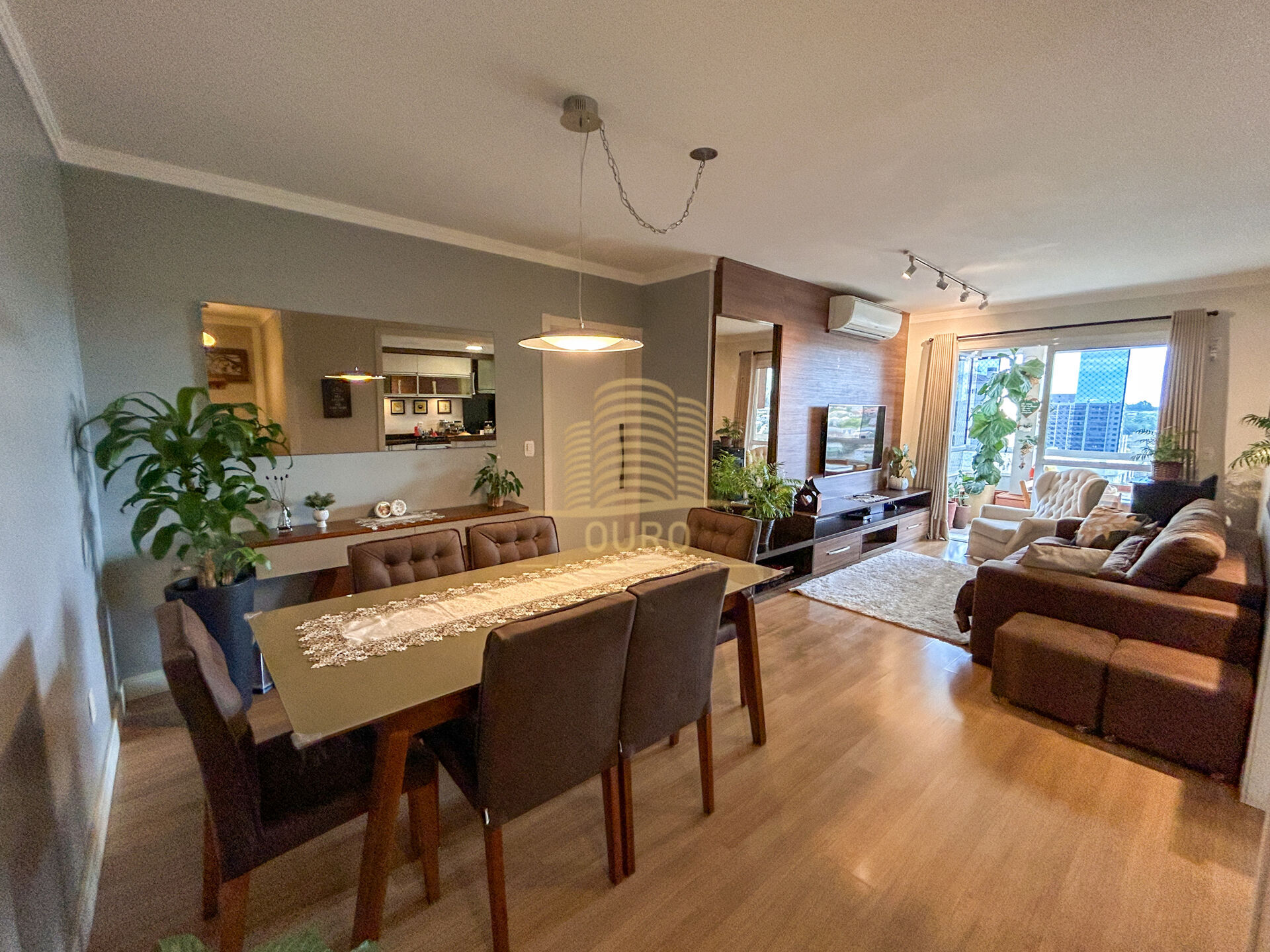 - Cortinas na sala e na sacada.